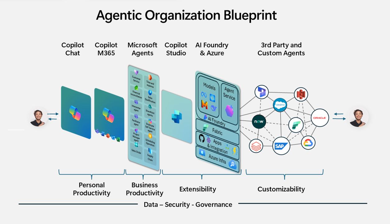 Microsoft’s bold ambition to integrate AI across the enterprise and consumer world is fueled by a unique and differentiated vision— a true #unicorn in the market. "A #Copilot for every employee and an #Agent for every process" encapsulates this strategy, ensuring AI is not just an assistant but a transformative force. #M365Copilot acts as the interface for powerful AI models, boosting productivity and reshaping how we work. Through the same UI, based on roles and business needs, a swarm of first- and third-party agents can be orchestrated to automate complex tasks, eliminating the need to navigate siloed systems.